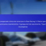Recompensele zilnice pentru conectare și premiile de eveniment servesc scopuri diferite în Real Racing 3, recompensele pentru conectare oferind beneficii constante, incrementale, în timp ce premiile de eveniment oferă recompense mai mari, unice, legate de provocări specifice. Jucătorii se pot aștepta să primească recompense pentru conectare în mod regulat, în timp ce premiile de eveniment depind de participarea la evenimente cu timp limitat.